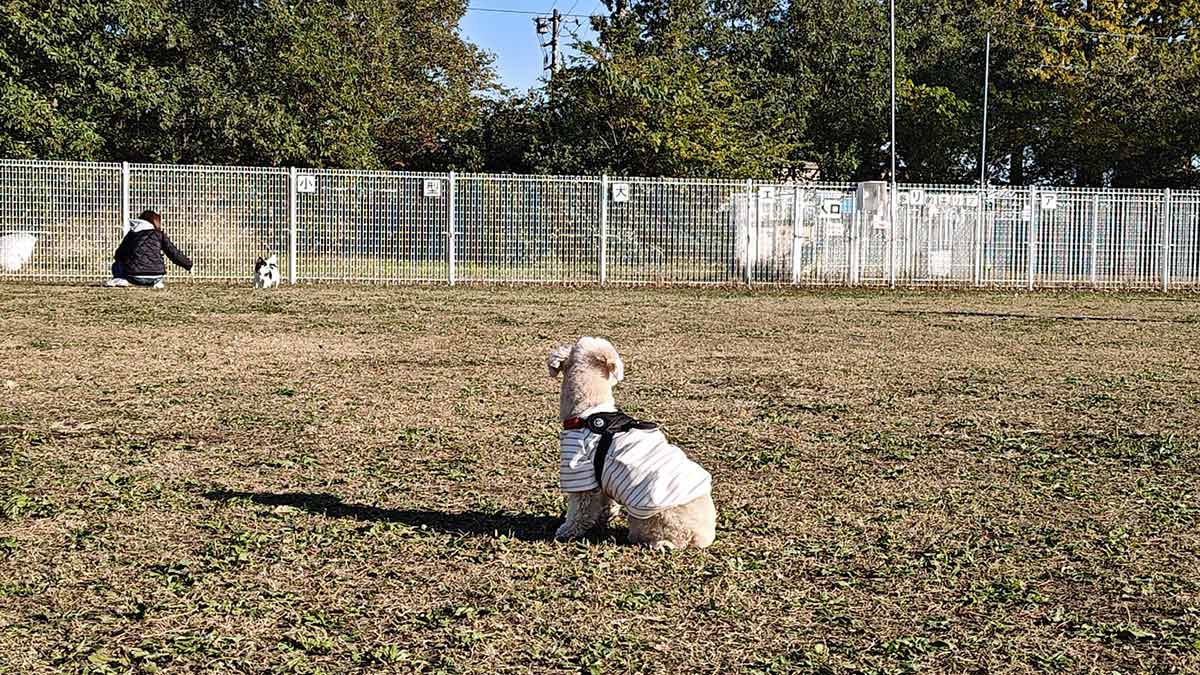 これは私のせいかなぁ…お散歩のときや、ドッグランでリードつけたままお願いして、他のワンコにご挨拶させてもらったりもしたのですが、どうにもこうにも苦手なようなので、無理強いするのは辞めました。