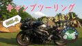キャンプ道具を撤収して、GSX-R600に積み込んでいる様子