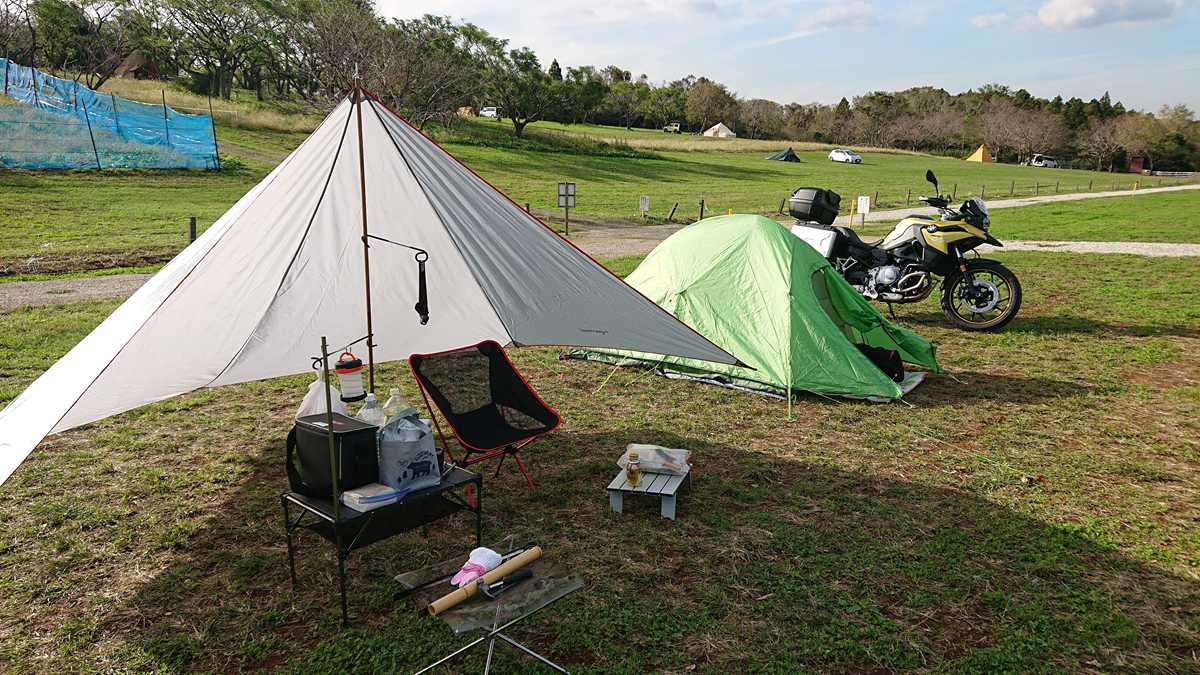 見よ、この適当な設営を!いいのです、本人が快適なら…